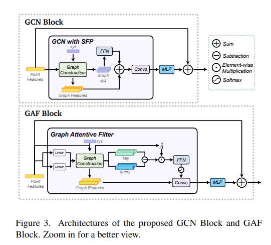 - Fig 3은 위의 설명들을 뒷받침하는 GCN 블록 및 GAF 블록의 내부 구조를 나타내고 있습니다.