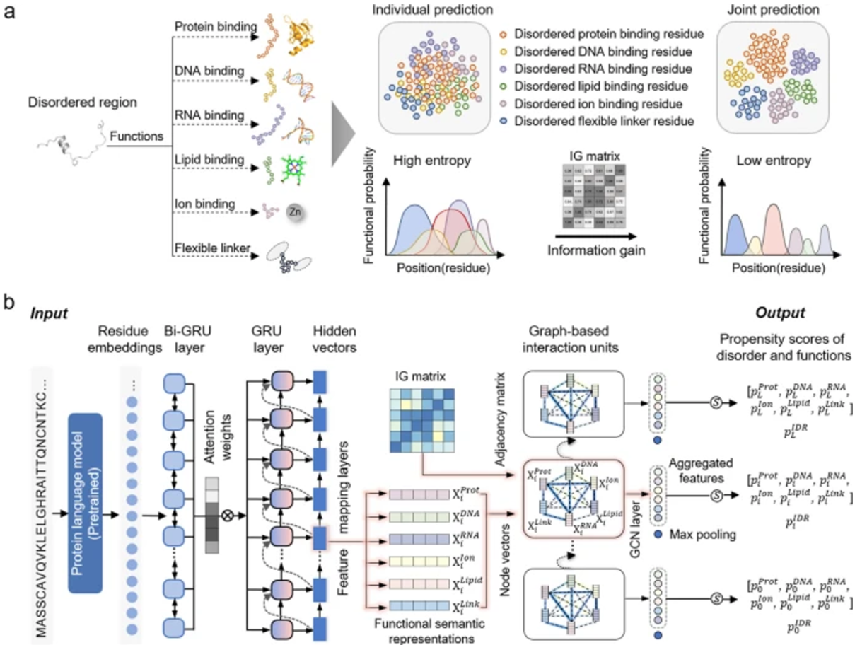 단백질은 본질적으로 무질서한 영역에서 다양한 기능을 수행할 수 있다는 사실을 기반으로 한 모델이며, ProT5 사전 학습 모델을 참고하여 개발되었습니다.