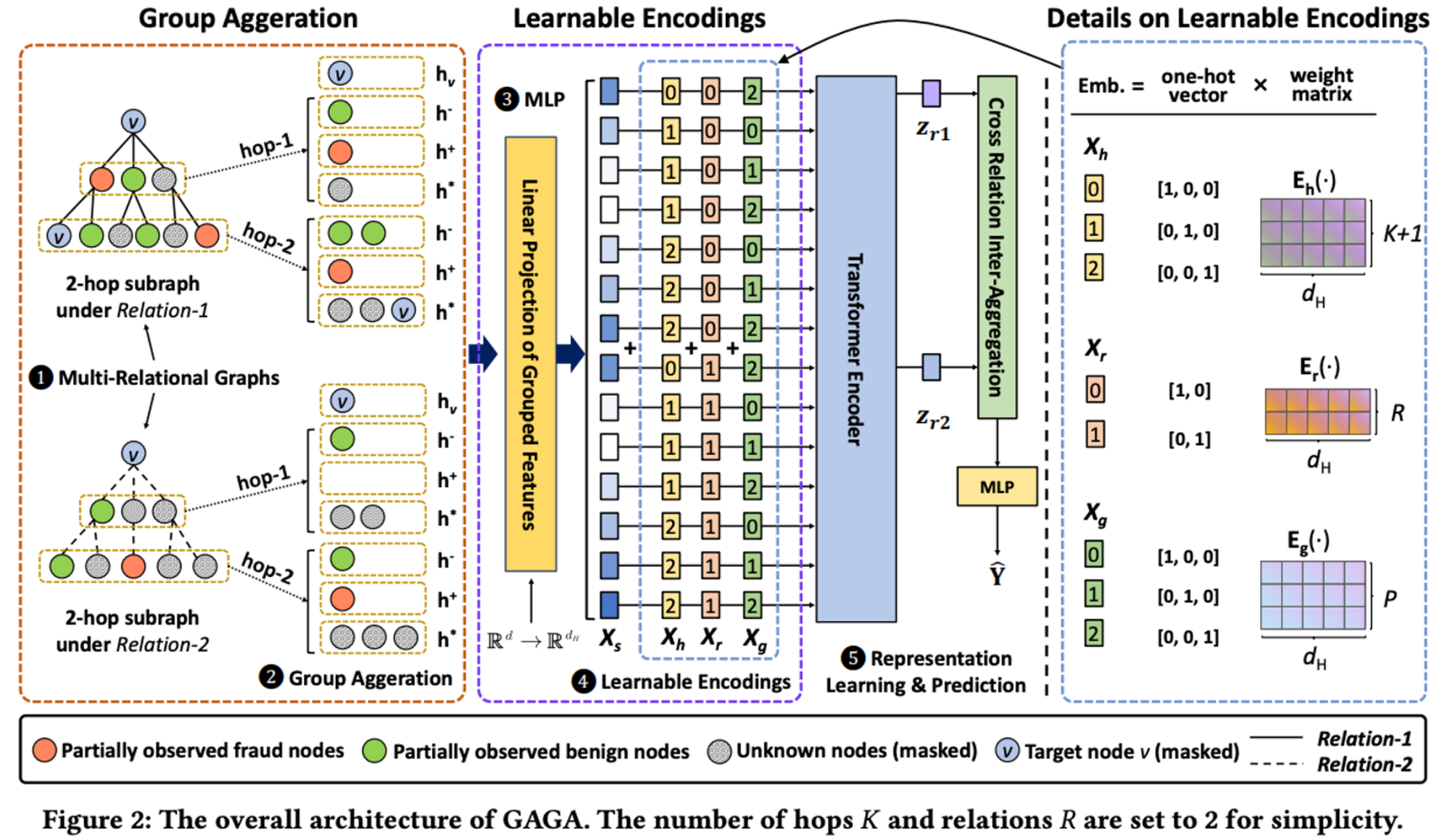 - 이렇게 인코딩이 다양해진다면, 모델 인풋으로 들어가는 인코딩 특성을 구분하기 위한 구분 식별자가 필요합니다. 더불어 라벨링 정보도 반영될 수 있기 때문에 label leakage도 고려해야 합니다. 그를 위해 one-hot 벡터 방식을 활용하고, label이 담긴 타겟 노드는 마스킹을 통해 그 정보가 반영되지 않게 처리해줍니다. 이후, 완성된 피처를 Linear layer에서 가중치를 붙여주고, transformer에서 각 임베딩마다 내적곱을 통해 추가 반영된 연관성 정보 임베딩을 마지막 추론 레이어에 적용하여 학습합니다.