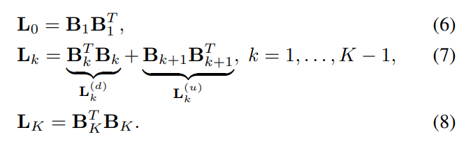 - 식 4의 해당 Simplicial complex signal에 대하여, Incidence relation (일종의 Neighborhood in complex) 및 Orientation 정보를 한번에 인코딩하는 Boundary matrix는 식 5와 같이 정의되며, 다음 matrix를 기반으로 Hodge Laplacian matrices를 식 6~8로 정의합니다.