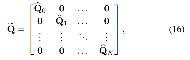 - 여기에서 Q 행렬은 Harmonic signal의 독립적 속성을 장담하기 위한 Block diagonal matrix로써 아래의 식 16과 같이 정의됩니다.