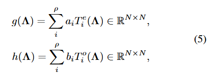 - 이를 모두 다루기 위해, 식 4와 같이 체비셰프 다항식 (Tk)을 변환하여 활용합니다. 변환의 목적은 웨이블릿 허용 기준을 충족하고 이론적으로 유연한 g, h 함수들로 근사하기 위함입니다. Fig. 1b에 시각적인 결과도 같이 제공하여 이해를 돕고 있습니다.