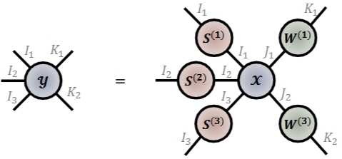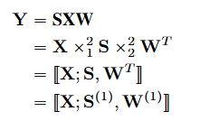 - 또한, 한 개의 입력 텐서와 한개의 행렬을 가지고와서 터커 곱셈으로도 표현할 수 있습니다.