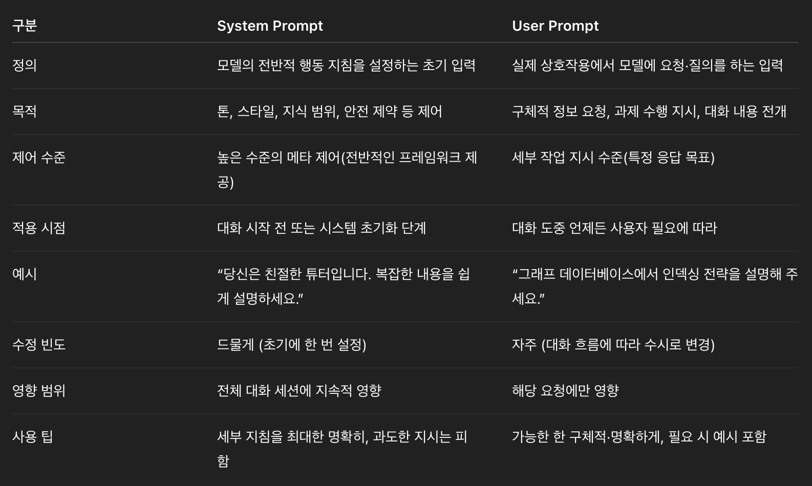 - 현재 진행하고 있는 prompt 는 system prompt 가 아닌, user prompt 로 작성해서 진행하고 있어서 추출한 ontology 의 품질이 만족스럽지 않을경우 개선 방향 중 하나이기 때문이에요. (userprompt,systemprompt 차이 조사해서 입력)