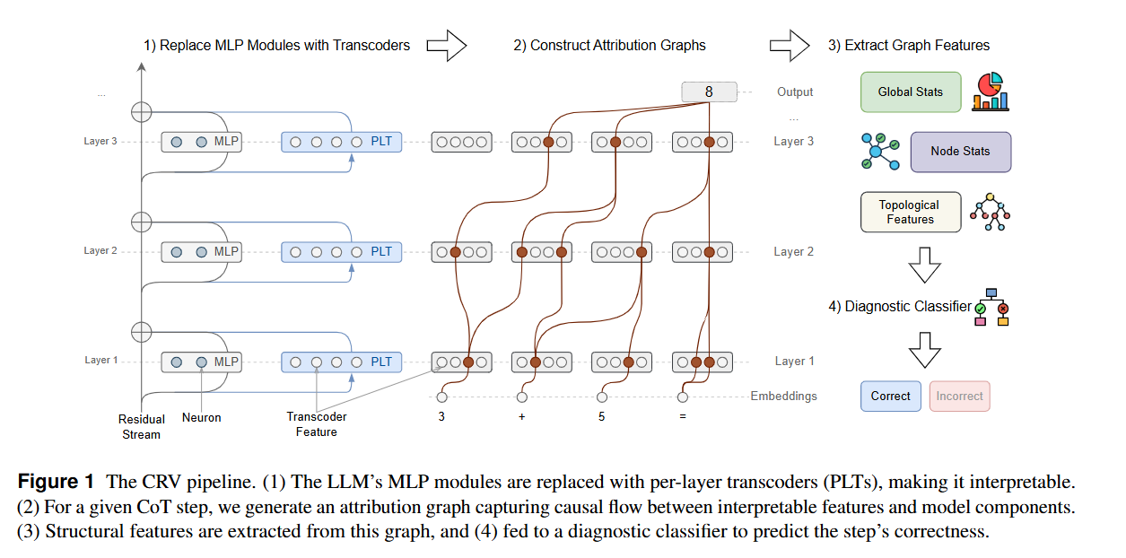 - 본 논문은 이러한 문제를 해결하기 위해 회로 기반 추론 검증(CRV: Circuit-based Reasoning Verification)이라는 새로운 방법론을 제안합니다. CRV는 LLM이 제시한 자연어 형태의 추론 과정을 계산 그래프로 변환하여, 추론의 정확성과 충실성을 동시에 검증할 수 있는 방법으로 소개됩니다.