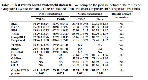 - 특히 WebKB에서 67%, Twitch에서 4.2%의 성능 향상을 보이며 실제 복잡한 분포 변화에 대한 우수한 일반화 능력을 입증했습니다. 주로 그래프 분류 작업을 위한 목적성을 갖고 있지만, 노드 분류 작업에도 쉽게 적용할 수 있습니다. 또한 데이터셋 내의 분포 변화 유형에 대한 해석과 통찰력을 제공할 수 있다는 장점 및 변화 요소들에 대한 불변성을 Theorem 1,2로부터 이론적으로도 보장됨을 언급합니다.