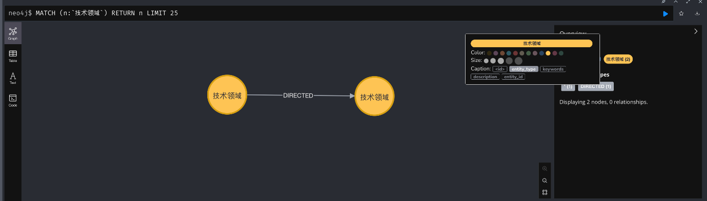 1을 선택하면 entity_type, keywords, description, entity_id 4가지 프로퍼티와 함께 다음 서브그래프가 적재 된다.