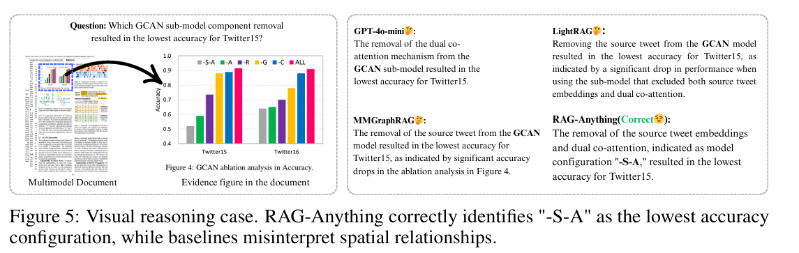 - 또 하나 주목할 점은 위치 인식의 정확도입니다. 복잡한 레이아웃에서 동일한 용어가 반복되더라도 서로 다른 표나 그림에 속한 경우 이를 구분할 수 있으며, 여러 패널로 구성된 시각화 자료에서도 필요한 정보를 정확히 찾아냅니다. 기존 모델들이 어려움을 겪었던 복잡한 차트와 표 분석에서도 공간적 관계를 구조적으로 모델링해 정답을 도출했습니다.