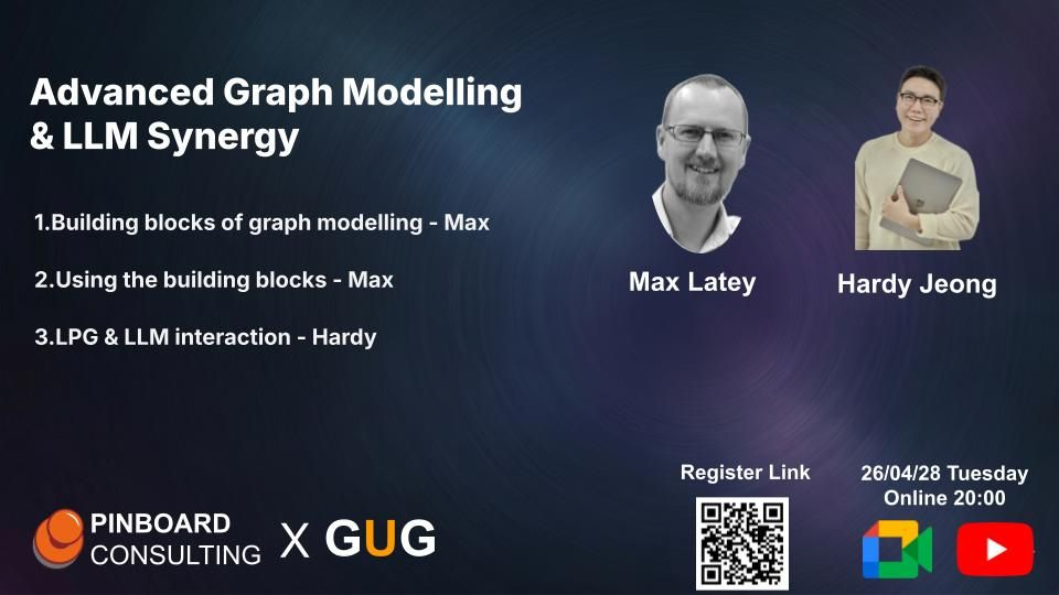 세션은 4월 28일 오후 8시부터 약 2시간 동안 진행됩니다. 영국과의 시차로 인해 일정 조율이 쉽지 않았지만, Max가 한국과 그래프 분야에 큰 관심을 가지고 있어 기꺼이 시간을 맞춰주었습니다. 평소 접하기 어려운 깊이 있는 콘텐츠인 만큼, 많은 분들이 참여하셔서 유익한 인사이트를 얻어가시길 바랍니다.