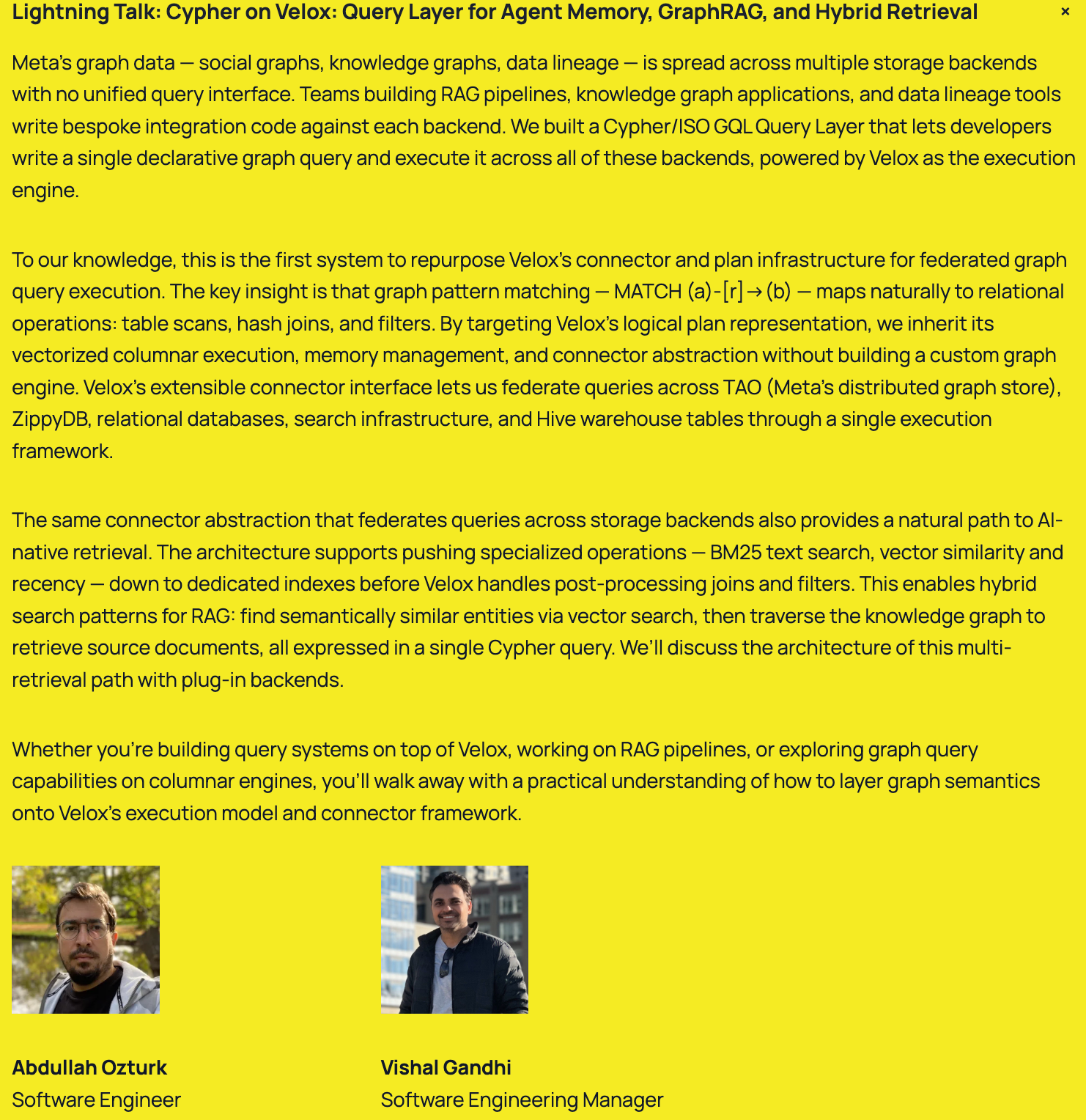 Graph는 여전히 춘추전국시대입니다. 특별한 점이라면, OLAP 진영에서 적극적으로 Graph Query & Parser 를 도입하고 있는데요. Oracle, Duckdb 그리고 Velox 행보가 심상치 않습니다. 이 중, Velox(Meta) 에서 GraphRAG 를 직접 언급하며, TAO, ZippyDB 엔진으로써 적용할 움직임을 보이고 있습니다.