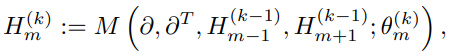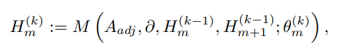 - 중요한 사실은 다음 AMPS은 저차원 요소로부터 고차원 요소로의 정보 흐름을 공통적으로 보이고 있다는 것입니다. 즉, 하나의 노드를 업데이트 하기 위해 주변 노드 및 연결된 엣지(co-face)를 모두 통합하며 그 엣지를 업데이트 하기 위해 주변 엣지 및 포함하는 면 (co-face)를 모두 통합하는 형식으로 반복적으로 수행됩니다.