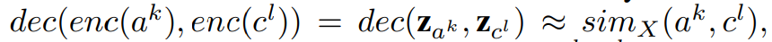 - Enc-Dec 으로부터 정량화된 다른 simplex 요소들 사이의 학습된 유사도 관계를 평가하기 위한 지표 (sim(a,c))가 필요합니다.