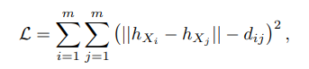 - 학습 과정에서 최소화 되는 목표함수는 두 요소의 임베딩 벡터 간 절대 거리와 Hausdorff distance와 같은 Simplicial complex 상의 거리 지표값을 정규화요소로 추가하여 아래와 같이 정의합니다.